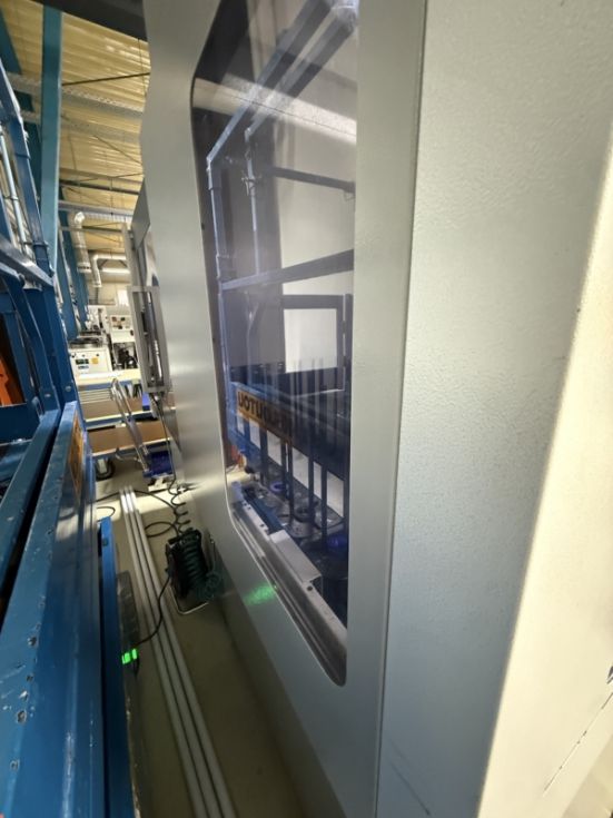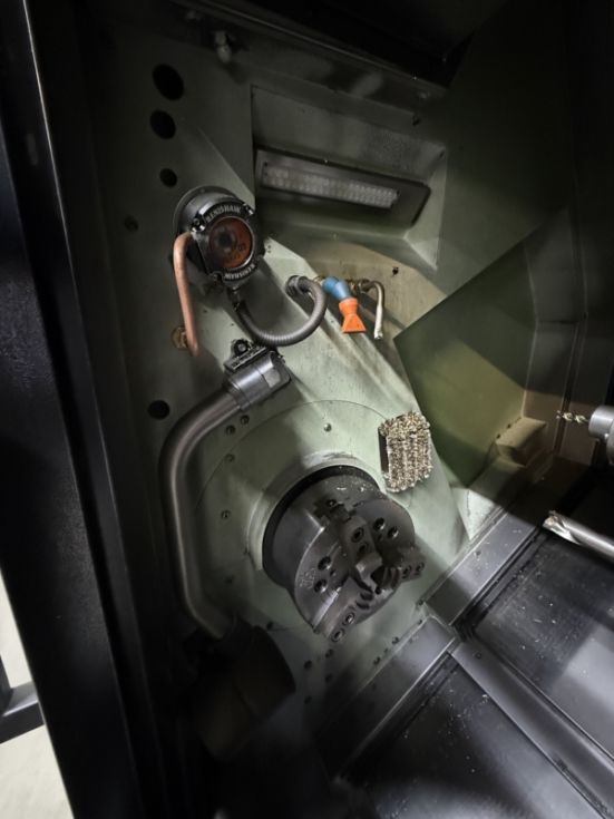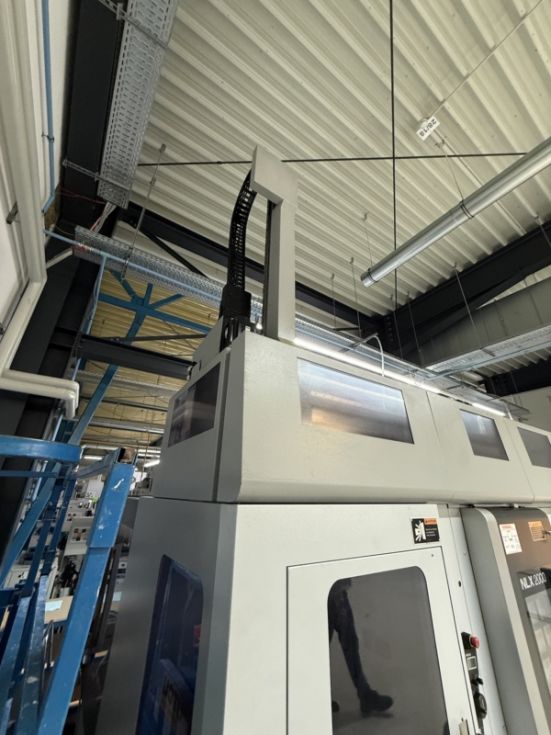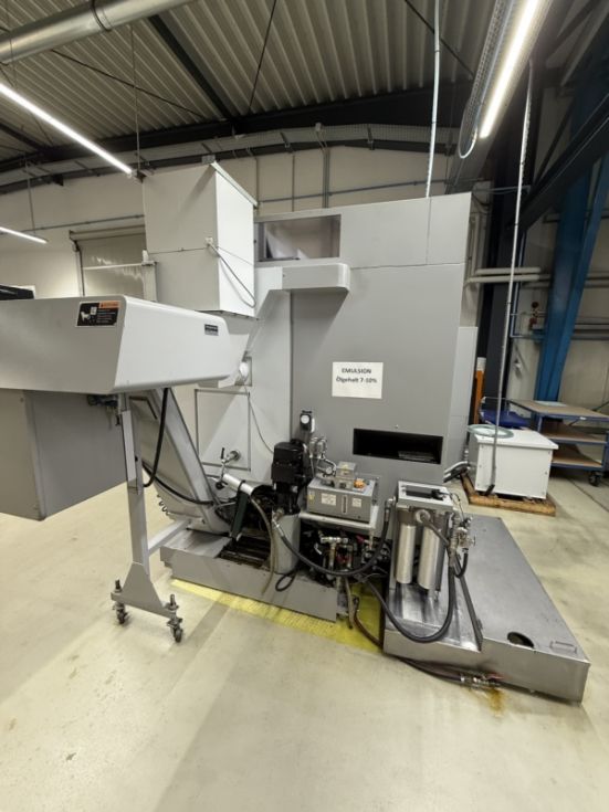 Año 2014 Longitud de giro 510 mm Diametro de giro 356 mm Control CNC: Mitsubishi 730 BM Husillo principal: Velocidad de giro 5000 rpm. Potencia 15/11 kW (15 % ED / constante). Diámetro de barra 65 mm. Contrahusillo: Velocidad de giro 6000 rpm. Potencia 11/7,5 kW (25 % ED / constante) Torreta de 12 posiciones: Velocidad del husillo de herramientas 10 000 rpm. Potencia 5,5/3,7 kW (5 minutos / constante) Eje Y +/- 50 mm Equipamiento: Máquina con cargador de pórtico: Montaje a la izquierda, 14 estaciones de almacenamiento, 20 palets de almacenamiento de piezas, Cinta de doble pinza Mandril hidráulico de 3 mordazas KITAGAWA, diámetro 210 mm Sistema de mandril de alta/baja presión para husillo principal y contrahusillo Bomba de alta presión MABEO Unidad de filtro con 1,5 MPa Pistola de refrigerante Ducha de refrigerante en el mandril para el husillo principal y el contrahusillo Ducha de refrigerante para el revestimiento de la bancada de la máquina Separador de neblina de aceite Extractor de virutas Sistema de medición de piezas Renishaw con transmisión óptica de señales, contrahusillo Refrigeración del husillo de bolas en el eje X |