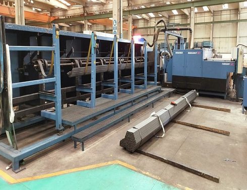 | Detalles | FEEDSTOCK TUBE external diameter min.: 10 mm external diameter max.: 101 mm Largo min.: 150 mm lenght max.: 3000 mm DATOS DE CONEXIÓN ELÉCTRICOS Tensión de conexión: 400 V Frecuencia de la red: 50 Hz DIMENSIONES / PESO espacio requerido -izquierdo/derecha-: 17200 mm espacio requerido -delante/atrás-: 5930 mm Peso total aprox.: 13000 kg Cutting + brushing + automatic measuring + automatic washing and drying + automatic drying - Number of hours: 25.833 - Automatic loader for master tube bundles up to 8000 mm. - Square tube diameters: 10x10 – 100x100mm Process: The mother tube, up to 8 meters long, is automatically loaded into the cutting unit, where it is cut to the specified length. It then automatically passes to the deburring unit, followed by the measuring unit, which rejects pieces outside of tolerance and allows the acceptable pieces to proceed to the washing and drying unit. Finally, the pieces are stored in an automatic collection system. |