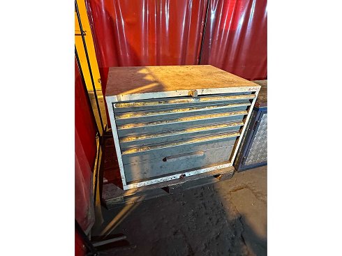 Descripción: Armario metálico con cajones para almacenamiento en el taller.