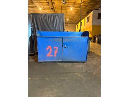 Descripción: Robusto armario base de taller hecho de acero pintado (azul), equipado con dos puertas articuladas.