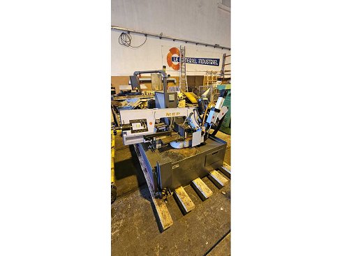MEP SHARK 330CNC FE Sierra de Cinta Automática (2001) Descripción: MEP SHARK 330CNC FE sierra de cinta automática, diseñada para un corte preciso de metales. Máquina robusta construida en 2001, ideal para la automatización CNC en la planta de taller. Dimensiones: 970 x 2.620 x 1.800 mm Peso: 1.200 kg Hoja: 3.320 x 27 x 0,9 mm – tensión 70 bar (900 kg) Características principales: Tornillo hidráulico con sujeción automática de haz Potencia del motor: 1,8 / 1,5 kW Velocidades de corte: 20–45 m/min y 35–90 m/min (regulador ) Presión hidráulica: 25 bar (sujeción) / 20 bar (corte y retorno) Fuente de alimentación: 400V / 50Hz – potencia máxima 3,3 kW Equipamiento incluido: mesas de rodillos, bomba de lubricación (11 L/min) Estado: Perfecto estado de trabajo con un ligero desgaste estético. Oferta: lista para uso inmediato.