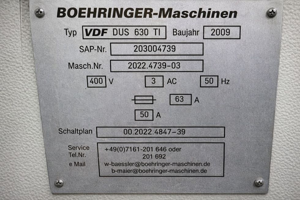 MACH-ID 9453Make:VDF BOEHRINGERType:DUS 630 TiControl:Siemens SinumrikYear:2009
