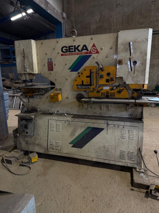 | Detalles | Punzonadora GEKA HYDRACROP 110/SD Potencia 110 Tn Longitud de chapa : 600 mm Ancho de chapa : 20 mm Ø Máximo de punzonado : 40 mm Golpes por minuto : 28 Incluye juego de punzones y matrices