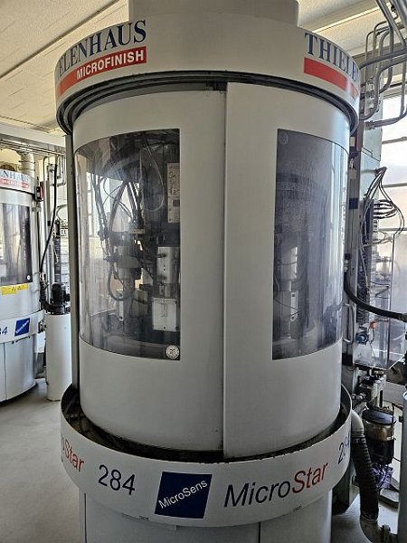 | Detalles | CONTROLS Control CNC SIEMENS 840 D SL DATOS DE CONEXIÓN ELÉCTRICOS Tensión de conexión: 400 V Frecuencia de la red: 50 Hz DIMENSIONES / PESO Peso total aprox.: 5200 kg Microfinishing machine type Microstar 284 in vertical design with 8 workpiece holders and 4 microfinishing units for machining slide and counter ring grinding. -11000 houers Workpiece spindles: 8 pieces Speed max 2000 rpm Number of finishing units 4 pieces max. speed 10'000 rpm max workpiece length 160 mm Loading height 1200 mm |