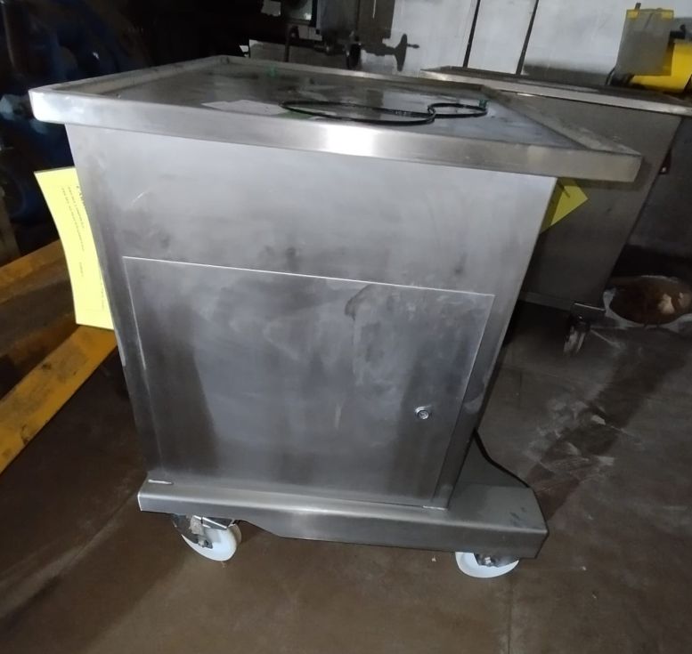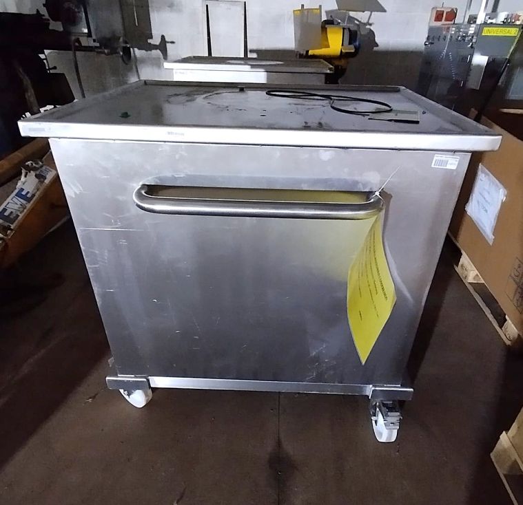 | Detalles | Dos mesas de trabajo en inoxidable. Montadas sobre ruedas con freno. Asa para poder mover la mesa de forma fácil. Huecas por dentro con acceso a través de puerta lateral para guardar herramientas u otros utensilios. En muy buen estado. Medidas: 1000mm alto x 750mm fondo x 950mm ancho. |