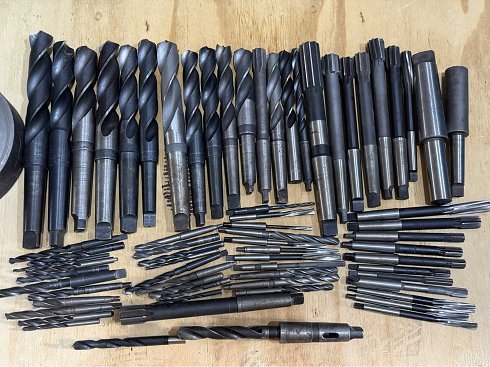 Gran variedad de taladros con diferentes longitudes y diámetros, varios escariadores, ver fotos, un total de 60 piezas, diámetro de 5 a 36 mm
