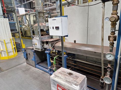 | Detalles | CONTROLS PLC SIEMENS S7 300 CHARACTERISTICS HEAT TREATMENT EQUIPMENT temperature max.: 1140 °C HEAT TREATMENT COMPARTMENT / ZONE length: 3636 mm Ancho: 300 mm Height: 15 mm DATOS DE CONEXIÓN ELÉCTRICOS Potencia de conexión: 173 kVA Aplicación: Producción de forros de fricción para embragues Sinterización de materiales en polvo de acero, cobre y latón sobre metal no ferroso/chapa de acero Enfriamiento en atmósfera libre de oxidación Uso para pequeñas series o planta piloto Diseño: Horno continuo con cinta transportadora con sección de calentamiento y enfriamiento Gas combustible: Gas natural Gas formador: H2, N2 Gases inertes/protectores: N2, argón Traducción realizada con la versión gratuita del traductor DeepL.com |