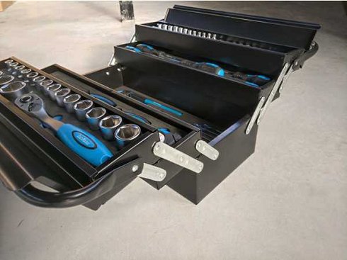 Caja de herramientas de 86 piezas llena de herramientas de calidad Nuevas en caja, herramientas StahlKaiser de acero cromo-vanadio, llaves de 12 anillas: 6-8-9-10-11-12-13-14-15-16-17-19 mm, 1 alicate de bloqueo (alicates de soldadura) de aproximadamente 22 cm de largo, 1 alicate de bomba de agua de aproximadamente 24,5 cm de largo, Juego de llaves Allen 9 piezas (1,5 - 10 mm), 1 alicate de punta fina de aproximadamente 16 cm de largo, 1 alicate combinado de aproximadamente 18 cm de largo, 5 destornilladores (1x PH1x75, 1xPH2x100, 1xSL5x75, 1xSL6x100, 1xSL8x150), 1 trinquete con dientes finos de 0,635 cm (1/4 de pulgada), 6 vasos de broca 0,635 cm (1/4 pulgada) 1x PH1, 1x PH2, 1x PZ1, 1x PZ2, 1x SL3, 1x SL4, 1 mango de destornillador para vasos de broca 0,635 cm (1/4 pulgada), 1 extensión 0,635 cm (1/4 de pulgada) 7,5 cm de largo, 12 vasos 0,635 cm (1/4 de pulgada) 4-4,5-5-5,5-6-7-8-9-10-11-12-13mm, 1 trinquete de dientes finos con liberación rápida 1,27 cm (1/2 pulgada) 18 vasos 1,27 |