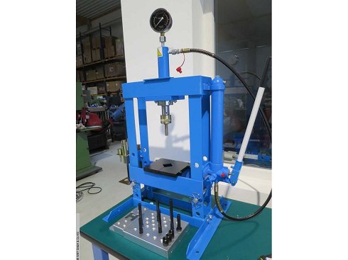 Esta prensa de bastidor está certificada CE según las últimas directrices>br>- con hidráulica manual>br>- para mover cilindros lateralmente>br>- 2 piezas bloque de prensa 200x250x40mm / 200x70x40mm, máximo 30t>br> con orificios roscados M16 y algunos tornillos roscados M16>br>- 8 piezas de pernos de prensa, 10 - 30mm,20mm , con adaptador de cambio rápido, máximo 20t>br>- 2 almohadillas de prensa>br>presión 10 t>br>recorrido 180 mm>br>Ancho libre entre montantes 335 x 115 mm>br>altura de instalación máximo 340 mm>br>cilindro diámetro 56 mm>br>Diámetro del pistón 40 mm>br>Peso de la máquina aprox. 0,05 t>br>requerimiento de espacio: aprox. 0,75 x 0,53 x 1,6 m |