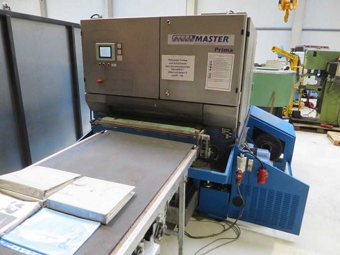 Máquina de desbarbado de chapa>br>- Panel táctil ESA>br> - incluyendo separador turbo>br> incluyendo mesa de alimentación 3m>br>- correas de repuesto>br>- documentación>br>pieza de trabajo ancho 900 mm>br>altura de la pieza - máximo 40 mm>br>velocidad de avance mm/min>br>pieza longitud 0 mm>br>control>br> consumo total de potencia 35 kW>br>máquina peso aprox. 3,7 kg>br>Dimensiones LxWxH 6,0 x 2,35 x 2,2 |