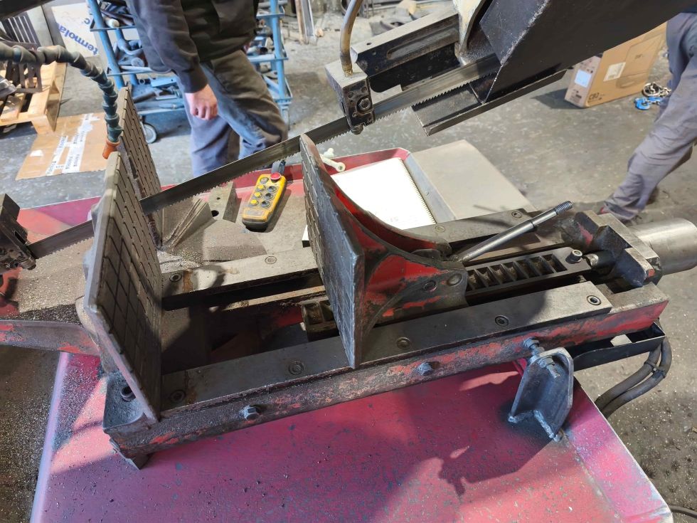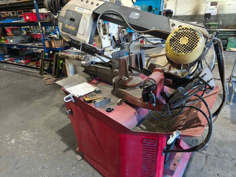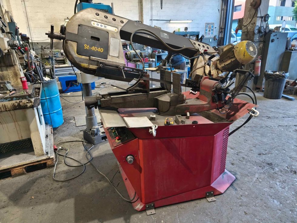 | Detalles | Sierra de cinta semiautomática usada Starrett ST-4040 con mordaza hidráulica, cortes en ángulo, subida y bajada automática y CE. |