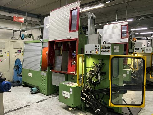 Línea de trazado Compuesto por Plataforma elevadora con escala Unidad de manejo de carretes Máquina de dibujo SAMPSISTEMI TE/25-A año 2007 Incluyendo máquina de estirar alambre, horno y máquina de bobinado Diámetro máximo del material de entrada 1,5 mm Diámetro del material de salida de 0,30 a 0,10 mm Cambio automático de bobinas DIN 160 y DIN200 Caja de cambios manual DIN125, DIN250, P5 y P10 Tamaño de instalación aprox. 9000x2700x3000 mm