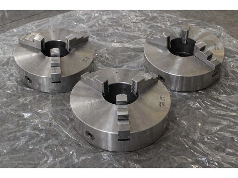 3 UNIDADES/JUEGOS DE ATT0033 EMPAQUETADOS JUNTOS. UN SOLO ATT0033 CORRESPONDE A: Mandril para torno autocentrante 3 + 3 mordazas 400 mm, cuerpo en hierro fundido rectificado, cierre con anillo helicoidal, sujeción manual concéntrica, mordazas templadas