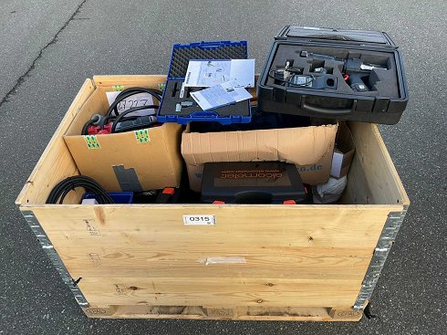 Contenido: varios cables para aplicaciones industriales, instrumentos de medición, manta eléctrica, 1 herramienta de prensado hidráulico inalámbrico de la marca Klauke, modelo LG4F. |