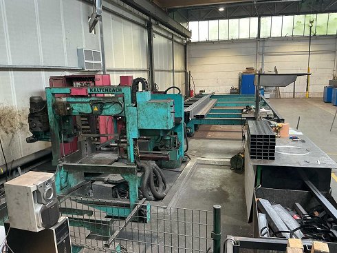 Disponible para la venta: línea completa de procesamiento de perfiles Kaltenbach compuesta por sierra de cinta y una plataforma de perforación, adecuada para la construcción en acero y el procesamiento en serie de perfiles. (¡VÍDEO añadido!)