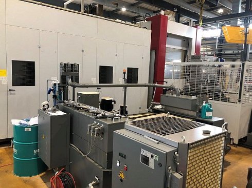 | Detalles | CONTROLS Control CNC SIEMENS 840 D ZONA DE TRABAJO -CÚBICA- número de ejes de procesamiento (sin ejes paralelos): 4 .. entre ellos ejes CNC simultáneos: 3 Trayecto de desplazamiento eje X: 2200 mm Trayecto de desplazamiento eje Y: 1600 mm Trayecto de desplazamiento Z: 1850 mm rango de rotación eje B de: 0 ° rango de rotación eje-B hasta: 360 ° MESA Anchura de la superficie de sujeción: 1000 mm Profundidad de la superficie de sujeción: 1250 mm Peso máximo de la pieza de trabajo: 5000 kg HUSILLO / CABEZAL Gama de velocidades de: 20 /min Gama de velocidades a: 10000 /min ACCIONAMIENTO DEL EJE Marcha rápida: 40000 mm/min ALMACÉN DE HERRAMIENTAS Número de posiciones de la herramienta: 60 Diámetro máximo de la herramienta : 110 mm - con la posición vecina libre: 250 mm Longitud máxima de la herramienta: 450 mm Peso máximo de la herramienta: 35 kg AUTOMATIC WORKLOAD EQUIPMENT Número de posiciones el almacenador: 2 DATOS DE CONEXIÓN ELÉCTRICOS Potencia de conexión: 130 kVA Tensión de conexión: 400 V Frecuencia de la red: 50 Hz DIMENSIONES / PESO espacio requerido -izquierdo/derecha-: 10000 mm espacio requerido -delante/atrás-: 8500 mm Altura total: 4100 mm Peso total aprox.: 42000 kg EQUIPO ADICIONAL Control de la ruptura de la herramienta: Sí Transportador de virutas: Sí Unidad de refrigerante: Sí band filtration unit: Sí Revestimiento del área de trabajo: Sí Certificado CE: Sí Equipment: - 3 clamping tables - Renishaw touch probe - Laser tool breakage detection - ARTIS tool and process monitoring - 4-color indicator light - 2 chip conveyors Spindle operating hours: 28,500 / 5,700 |