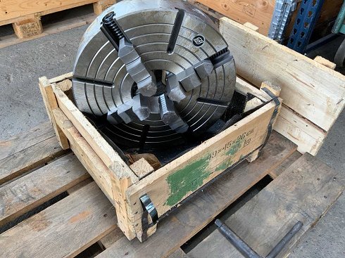 Un mandril de 4 mordazadas, diámetro 400 mm, salida 130 mm, en caja de madera, como nuevo |