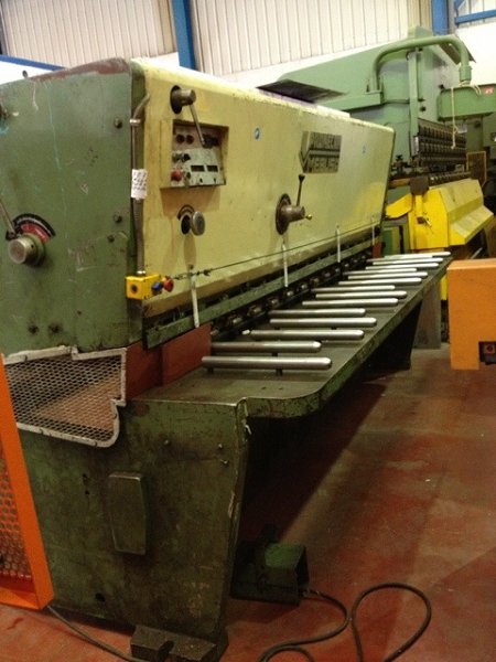 Detalles de fabricación: Rigidez: Bastidor mecano-soldado, de acero de alta calidad indeformable. El tablero inferior apoya sobre los montantes por patines que forman DOBLE-ROTULA, evitando así que trabaje cualquier soldadura. Este principio se aplica también al tablero superior y a la placa frontal haciendo que los esfuerzos estén bien repartidos y eliminando cualquier riesgo de deformación del bastidor. Guiado sin desgaste ni manutencion: Rodamientos de rodillos ampliamente dimensionados aseguran el guiado del tablero móvil (porta-cuchilla) sobre toda su longitud, y absorben las reacciones del corte. No existen piezas correderas o de rozamiento. Cuchillas:Cuchilla superior e inferior de 4 cortes con rápida regulación e independiente del ángulo de corte. Permiten obtener cortes limpios y escuadrados cualquiera que sea el espesor (0.5-20mm) y la calidad del material. La inclinación del tablero móvil permite la retirada de la cuchilla superior justo después de la línea de corte. Cuadrode mandos: