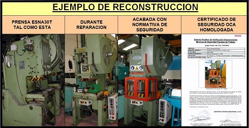 | Detalles | Prensa excéntrica Guillén 40t con embrague neumático Detalles: Máquina con embrague neumático, se puede proporcionar al cliente con Normativa de Seguridad vigente (ver ejemplo): |