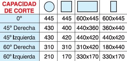 | CAPACIDAD DE CORTE |