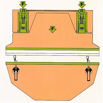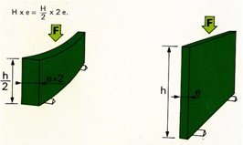 | LA CALIDAD DEL PLEGADO DEPENDE DE LA RIGIDEZ de los elementos que constituyen la máquina. Dos piezas de la misma sección bajo la acción de una misma fuerza F, la fatiga se multiplica por 2 y la flecha x4 cualquiera que sea la resistencia de la chapa utilizada, por eso la mesa normalizada AJIAL escoge la sección más favorable |