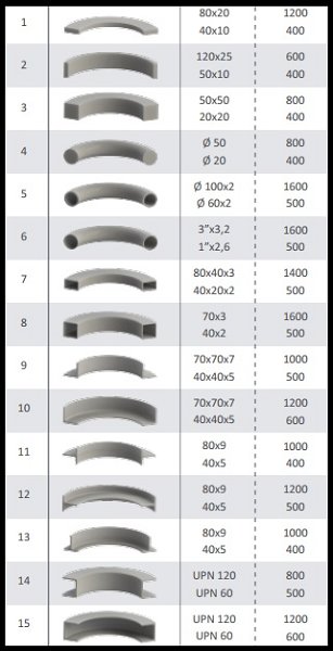 Curvadora de perfiles HPK-60 Tabla capacidades
