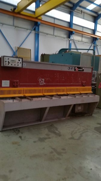 Características técnicas: Espesor máximo de corte: 10mm Longitud total de corte: 3.100mm Potencia motor: 20cv Número de cortes por minuto: 18-32 Longitud total: 3.700mm Anchura total: 1.850mm Altura total: 1.810mm Altura de trabajo: 800mm Cuello de cisne: 500 mm Recorrido de tope posterior: 1.000mm Peso aproximado: 8.2tConfiguración de la máquina: