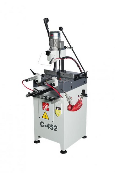 | Detalles | Fresadora copiadora de aluminio semiautomática C-452-SA Fresadora copiadora de alto rendimiento para realizar alojamientos de cerraduras, bisagras y toda clase de ranurados y fresados mediante plantilla o topes reguladores, en toda clase de perfiles de aluminio, plástico, etc. Refrigeración y pisadores neumáticos.Arranque del motor a través del pulsador de la maneta izquierda. FresadoraMG C-452SACaracterísticas técnicas: Dimensiones de mesa: 450x230 mm Recorrido longitudinal: 230 mm Recorrido transversal: 110 mm Desplazamiento vertical: 145 mm Motor: 0.50 hp Velocidad corte: 9.600 rpm Diámetro mango fresa: 8 mm Peso: 120 kg Consumo aproximado de aire por ciclo: 3 litros |