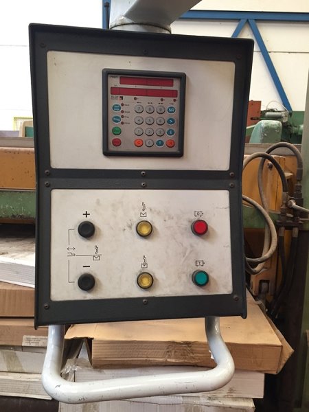 Características técnicas: Potencia de plegado: 90t Potencia motor: 11kw Depósito de aceite: 170l Velocidad de aproximación: 95mm/s Velocidad de trabajo: 10mm/s Velocidad de retroceso: 80mm/s Peso: 6.000kgs Longitud de plegado: 3.100mm Longitud entre tableros: 2.550mm Anchura de tableros: 1.250mm Altura de trabajo: 870mm |