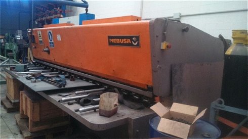 | Detalles | Cizalla hidráulica Mebusa 4100x10mm La cizalla hidráulica Mebusa es la mejor máquina que se ha fabricado para el corte ininterrumpido de hierro. El diseño específico de este modelo de Mebusa permite el corte de espesores superiores al nominal de la longitud de la máquina. La fuerza de corte es aumentada por un dispositivo especial de sujección, garantizando la robustez y precisión en cualquier operación y haciendo que tanto bastidor como tablero soporten esfuerzos con espesores máximos.Características técnicas: