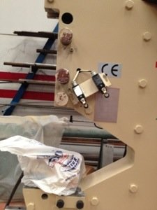 | 1. Husillo regulación y posicionamiento altura de la guía.2. Bridas sujeción cuchilla3. Bulones sujeción guía