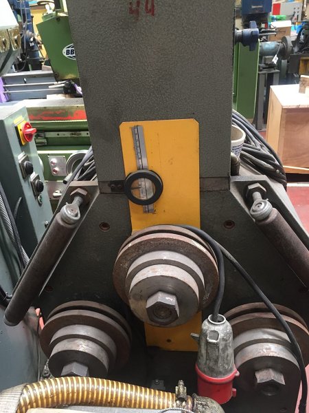| Detalles | Curvadora de perfiles 3C Arcall CR125Hcon mucho utillaje para aluminio La curvadora de perfiles 3C Arcall CR125H es una máquina para curvar hierro y aluminio de tres rodillos de muy robusta construcción. Es una máquina de accionamiento eléctrico con movimiento hidráulico ascendente y descendente del eje central con variador de velocidad. Curvadora de tubos y perfiles Arcall CR125HCaracterísticas técnicas: