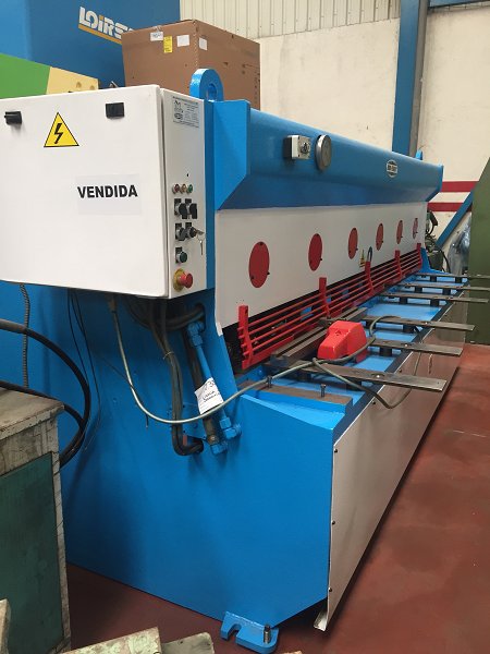 | Detalles | Cizalla hidráulica Ferry CH 3100x10mm Cizalla hidráulica Ferry CH 3100x10mmCaracterísticas técnicas: Longitud de corte: 3.050mm Espesor max. Corte hierro: 6mm Espesor max. Corte acero: 4mm Potencia motor: 10cv Ángulo de corte: 1º – 2º30? Tope trasero: 750mm Número de pisadores: 12 Dimensiones: 3.700×1.600×1.700 mm Peso: 5tOtros detalles de fabricación:
