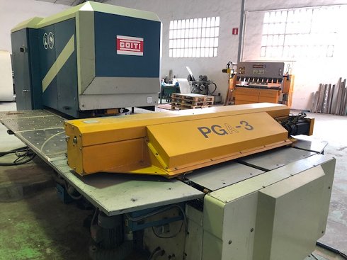 | Detalles | Punzonadora Goiti PGA3 Punzonadora Goiti PGA3 (1)Características técnicas: Superficie de trabajo sin reposición: 2.000x1.250mm Capacidad de punzonado: 300Kn Espesor de material: 6mm Velocidad máxima de desplazamiento: 80m(min Precisión de posicionamiento: +/-0.025 Tolerancia de punzonado: +/-0.10 Número de golpes (continuo): 400 golpes/min Número de golpes (paso 25): 220golpes/min