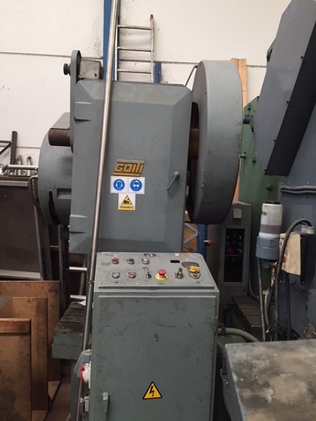| Detalles | Prensa excéntrica Goiti NFR-80 de 80t Prensa excnéntrica Goiti de 80t completamente operativa, con mesa ranurada en " de 800x400mm y mando bimanual de seguridad. Prensa Goiti 80tCaracterísticas técnicas: Fuerza: 80t Cursos: 5-20-43-66-89-107-120 Alargamiento de biela: 71mm Golpes por minuto: 62 Potencia motor: 7,5 Prensa excéntrica Goiti 80t |