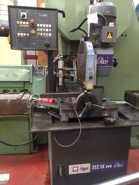 La tronzadora de disco TIGER 352 SX evo, es una máquina de corte vertical semiautomática, para cortar acero desde 60 ° a la izquierda a 45 ° a la derecha, con disco HSS. - Máquina con un microprocesador con un eje controlado, gestionado por el controlador MEP de última generación diseñado exclusivamente para sus sierras semiautomáticas.