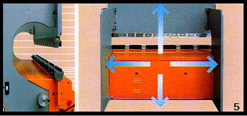 Detalles del sistema de plegado Promecam: SISTEMA DE PLEGADO MEBUSA-PROMECAM es el resultado de más de 50 años de experiencia en la fabricación de máquinas de plegado de precisión. Permite obtener acabados perfectos gracias a su único sistema de empuje central. El sistema convencional de plegado presenta gran diferencia angular central mientras que el sistema MEBUSA minimiza las deformaciones de los tableros mediante una distribución de los esfuerzos y una compensación parcial con diferencia angular reducida. Sistema de plegado antiflexión Mebusa-Promecam PARALELISMO garantizado mediante sistemas integrales de equilibrado hidráulico:Utillaje universal PROMECAM Detalle del NC Vision 120 a 1 eje: Posicionador para plegadora VISION 120 a 1 eje | ||