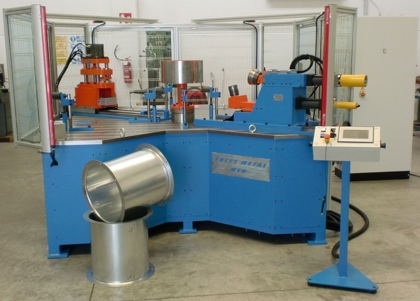 | Detalles | Maquinas estudiada para la construcción del bastidor exterior de ventiladores axiales, conductos y tuberías para ventilación. Características maquina modelo SMM Ø1600: - Motorización del mandril por motorreductor e inverter. - Mando oleodinámico con centralita integrada. - Gestión completa por PLC. - Unida para flangear. - Punzonadora para perforar chapa espesor 4 mm, diametro de agujero Ø15 mm. |
