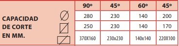 Tabla de capacidades de corte: |
