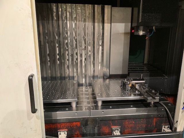 | Details | X – Travel 1740 mm Y – Travel 760 mm Z – Travel 660 mm Table Length 2000 mm Table Width 760 mm Table load 1400 Kg Feed rate X-Axis 36000 mm/min. Feed rate Y-Axis 36000 mm/min. Feed rate Z-Axis 36000 mm/min. Spindle Taper 40 ISO/Bt/Mk Power on spindle 18.5 kW Speeds / ranges 12000 Rpm ATC / revolver 30 Coolant true spindle / Bar 15 Number of controlled axis 3 + 1 Chip conveyor yes Coolan tsystem yes |