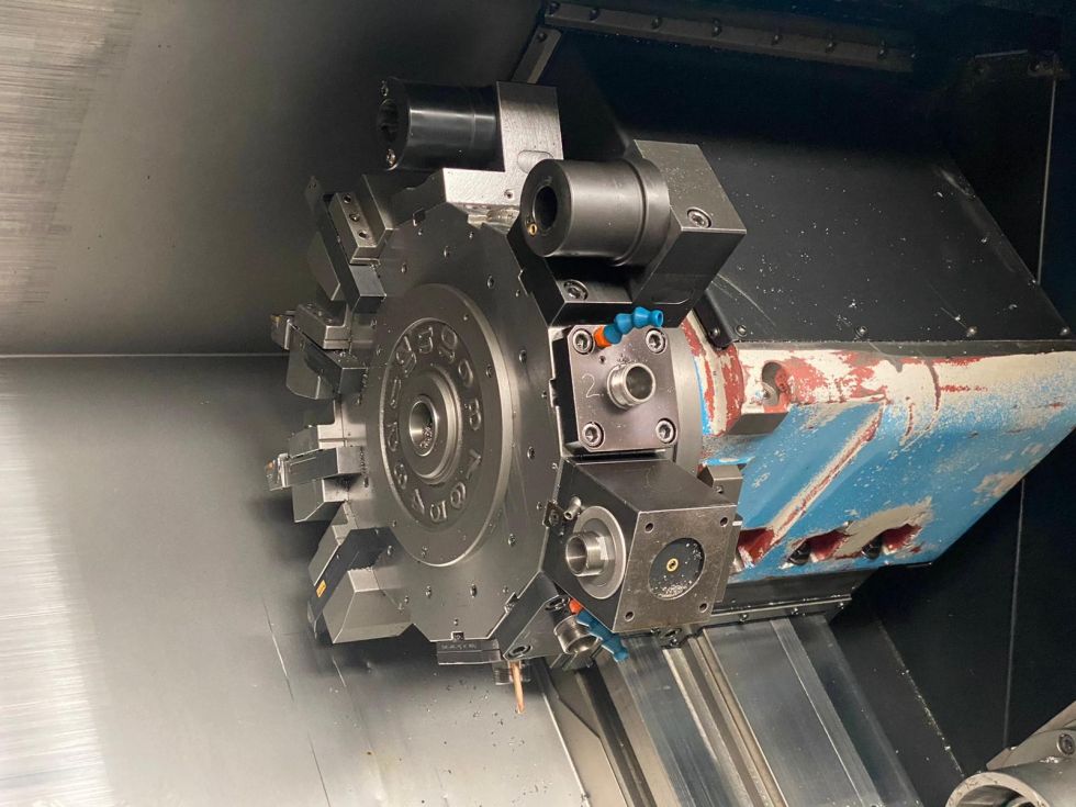 | Details | Max. turning Ø 350 mm X-Axis 222 mm Z-Axis 1.100 mm Spindle bore 71 mm Speedrange 5000 Rpm Spindle power 36 kW Subspindle speeds 4000 Rpm ATC / revolver 12 Speed live tools 3500 Rpm Power live tools 5 kW Control FANUC Chip conveyor Yes |