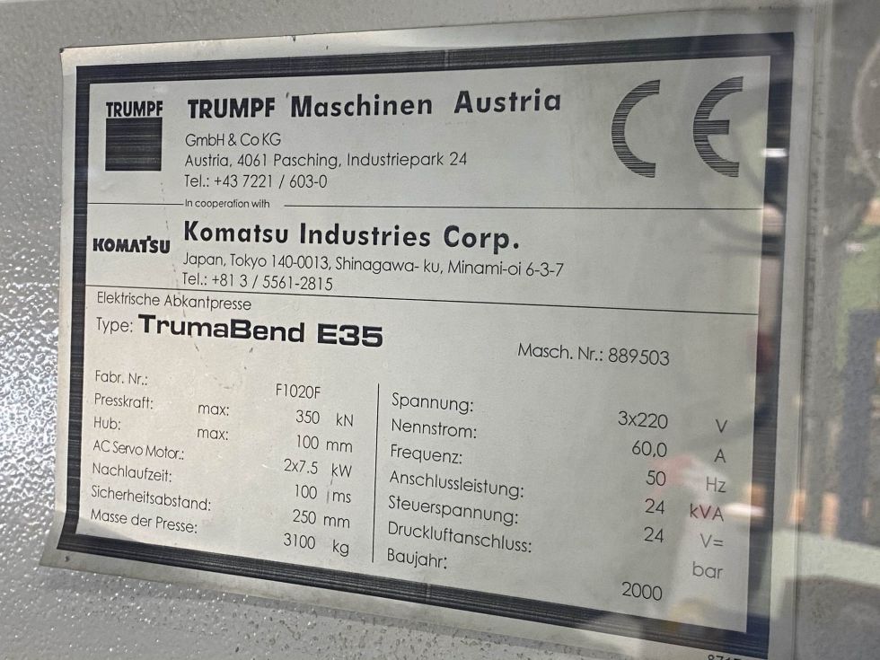 | Name | TRUMPF - TrumaBend E35 Servo Mechanical Pressbrake 1250 x 35 Ton 6327 = Mach4metal |