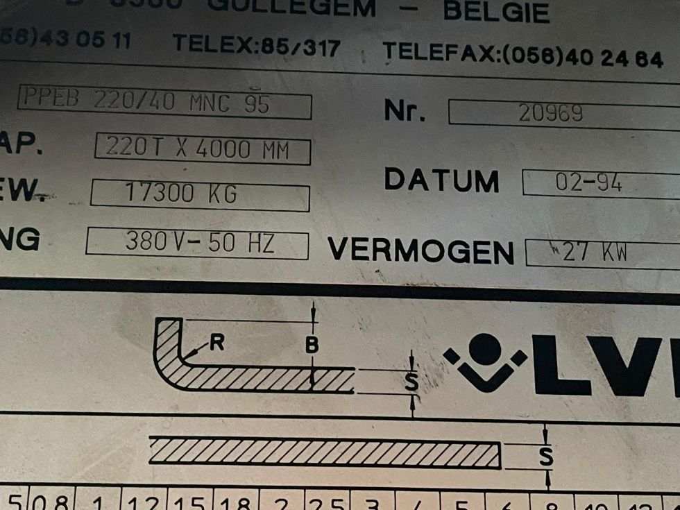 | Name | Press brake LVD - PPEB 220/40 MNC95 CNC Hydraulic 4000 x 220 Ton mm 6409 = Mach4metal |