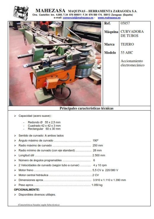 | Details | Accionamiento electromecánico, Capacidad tubo redondo diámetro 55 x 2,5 mm, cuadrado 42 x 42 x 3 y 50 x 25 x 3, sentido de curvado a ambos lados |
