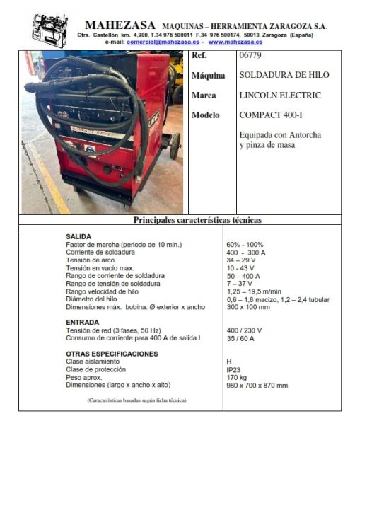 | Details | Compacta, equipada con antorcha y pinza de masa, 400 A al 60%, 300 A al 100% |
