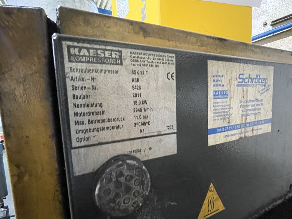 | Details | Kaeser - ASK 27 T MACH-ID 8524 Make Kaeser Type: ASK 27 T Year: 2011 OKS Tank with 1000 Liter