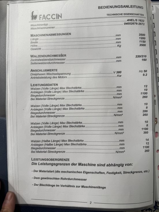 Name4 roll plate bender FACCIN - 4HEL 1622