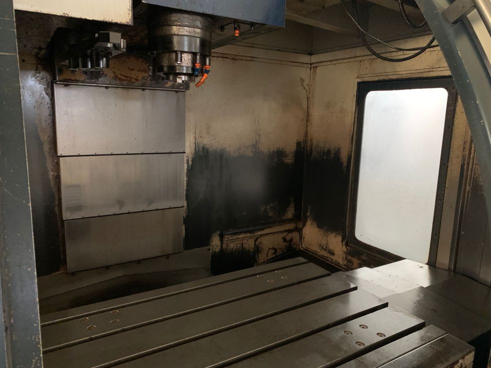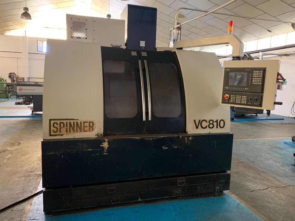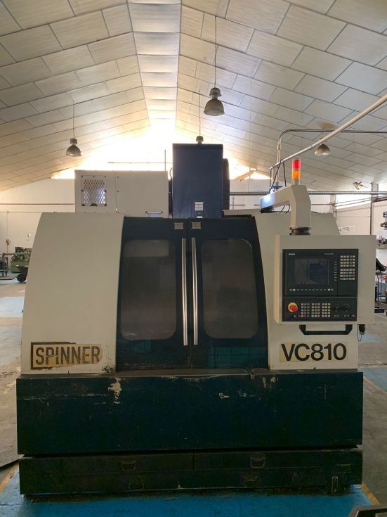 Centro de mecanizado SPINNER Modelo VC 810 CNC SIEMENS 810D Año 2002 Dimensiones de la mesa 1000 x 600 mm Recorrido eje X 800 mm Recorrido eje Y 600 mm Recorrido eje Z 510 mm Tipo cono SK 40 Numero de herramientas 24 Velocidad del husillo 8000 rpm Potencia motor husillo 16.5 Kw