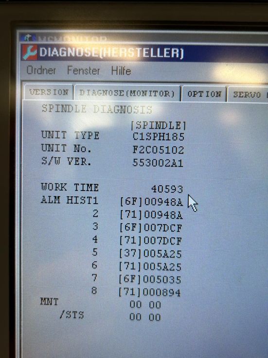 | Details | X - Travel1740 mm Y - Travel760 mm Z - Travel660 mm Table Length2000 mm Table Width760 mm Table load1400 Feed rate X-Axis36000 mm/min. Feed rate Y-Axis36000 mm/min. Feed rate Z-Axis36000 mm/min. Spindle Taper40 ISO/Bt/Mk Power on spindle18,5 kW Speeds / ranges12000 Rpm ATC / revolver48 Coolant through spindle / BarYes, 20 bar Number of controlled axis3 Chip conveyorYes CoolantsystemYes |