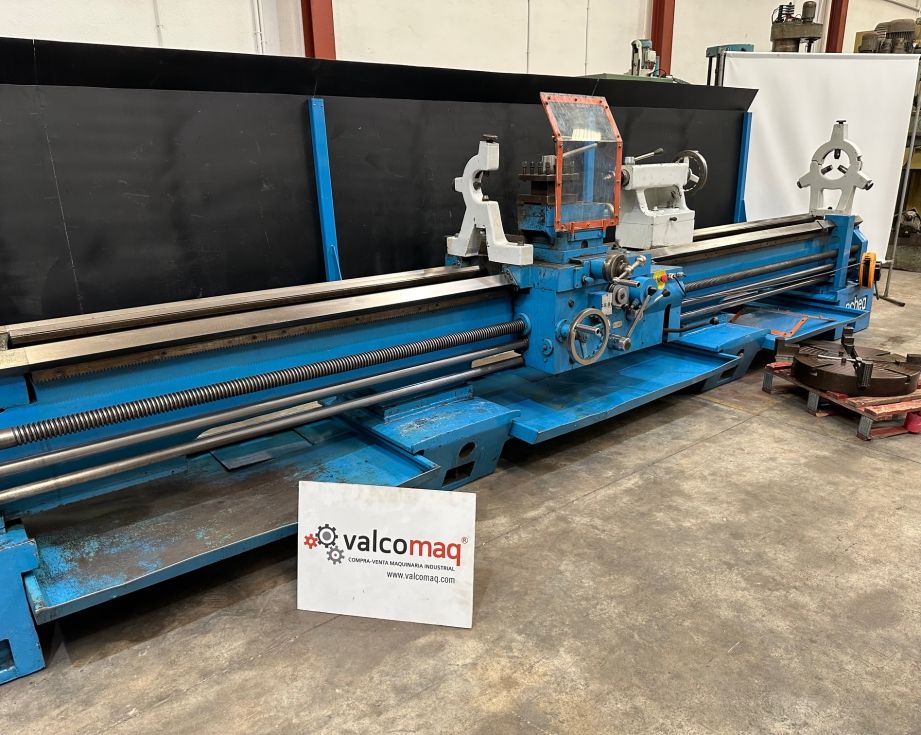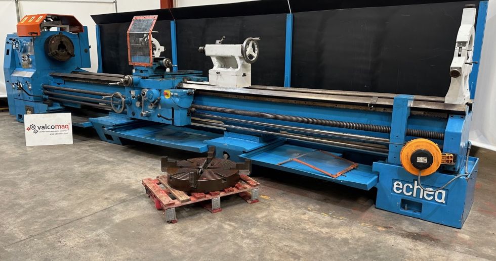 | Details | Torno Echea modelo AII de 5000mm e.p diametro sobre bancada 750mm,sobre escote 1050mm, sobre carro 500mm,diametro del agujero de la caña 84mm,12 rpm del motor desde 8-850rpm , lleva montado plato de 400mm universal de 3 garras autocentrante y plato de garras independientes de 600mm, con luneta fija y movil , torno con protecciones, en general en buen estado |